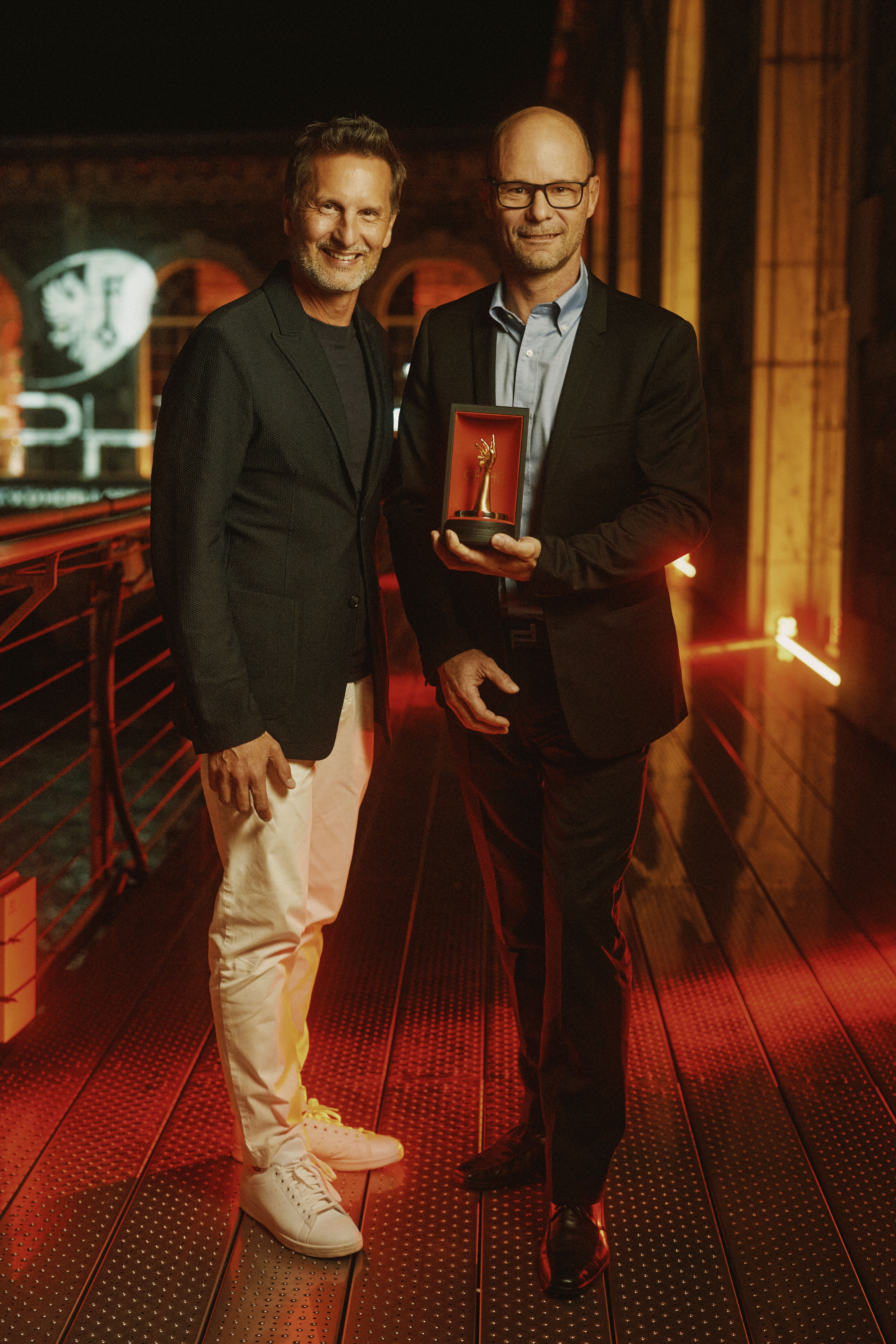 Arnaud Nicolas, CEO and creative director of L'Épée, winner of the Mechanical Clock Prize 2025 and Maximilian Büsser, Owner and creative director of MB&F and M.A.D. Editions