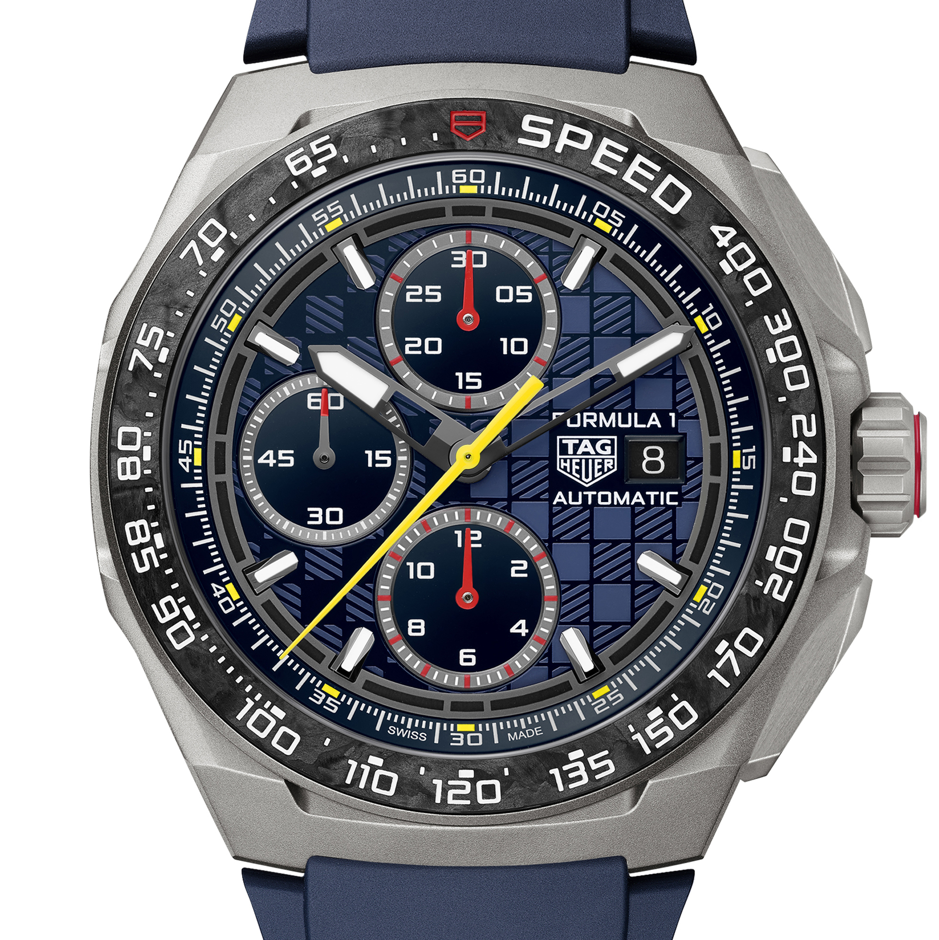 The TAG Heuer Formula 1 x Oracle Red Bull Racing Chronograph is a bold celebration of speed, control, and modern motorsport mastery.