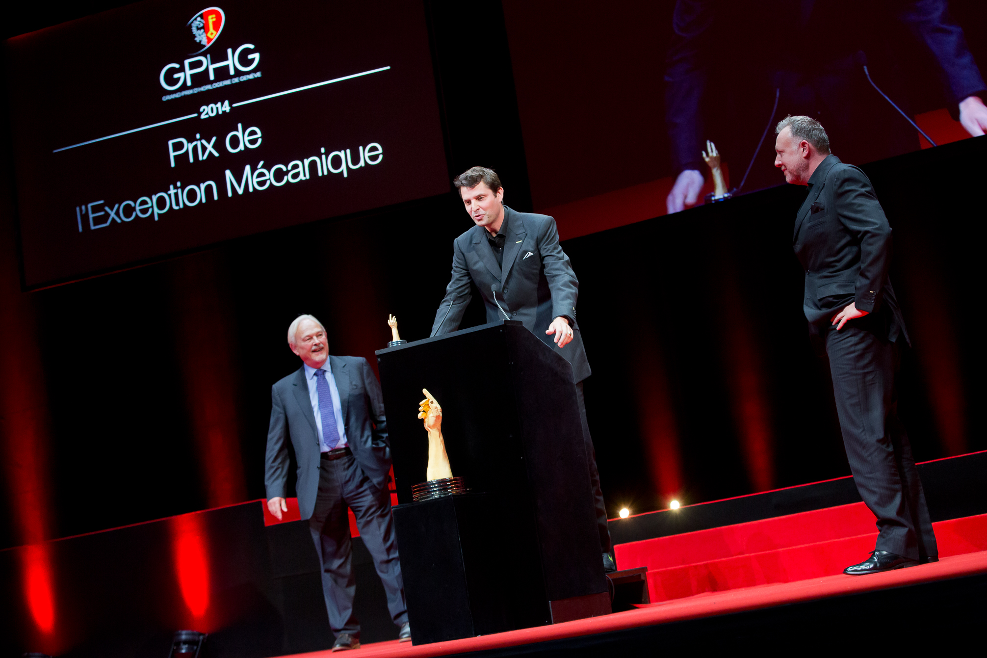 Philippe Dufour (jury member), Felix Baumgartner and Martin Frei (Co-founders of Urwerk, winner of the Mechanical Exception Watch Prize 2014)