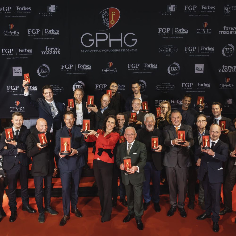 Michel Navas and Enrico Barbasini, Master watchmakers and founders of La Fabrique du Temps Louis Vuitton, representatives of gérald genta, winner of the Ladies’ Watch Prize 2025