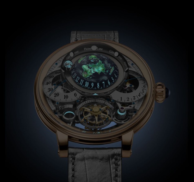 Le tourbillon Récital 22 Grand Récital (série limitée à 60 exemplaires) invite le collectionneur à observer les évolutions des trois astres qui rythment notre vie : le Soleil, la Terre et la Lune. Cette représentation cinématique des trois astres est connue sous le nom de Tellurium-Orrery.